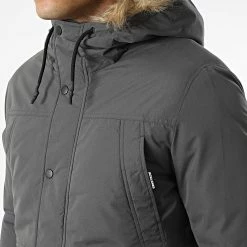 Grosses soldes 🧨 Parka Capuche Fourrure Winner Gris Anthracite de Jack And Jones 🎉