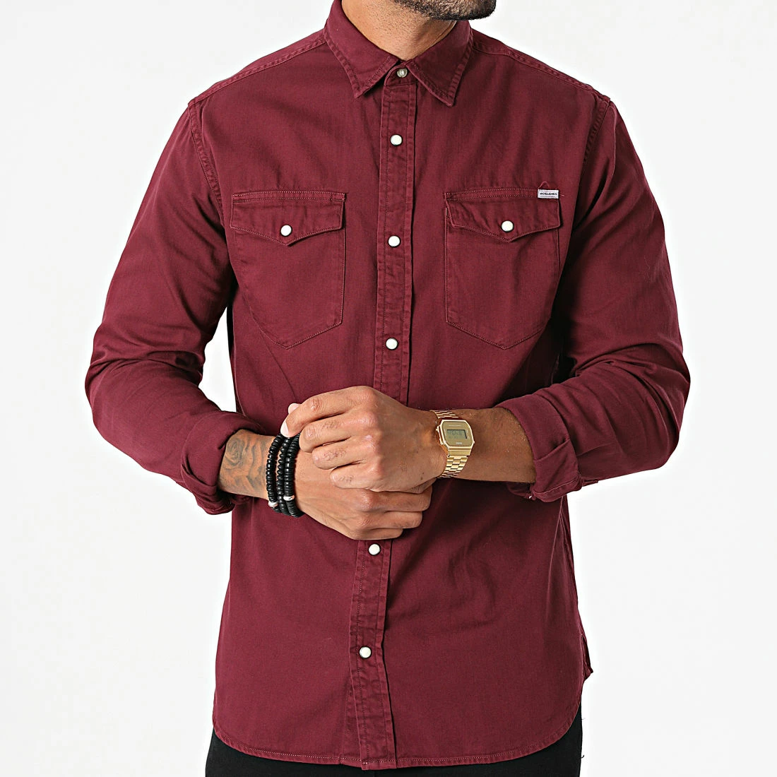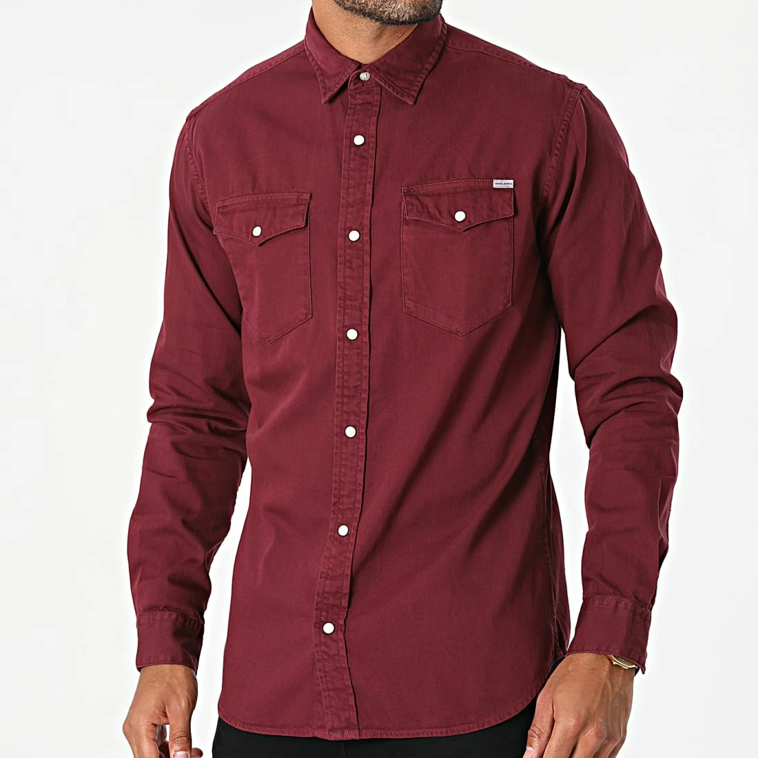 • Chemise manches longues en jean finition légèrement délavée