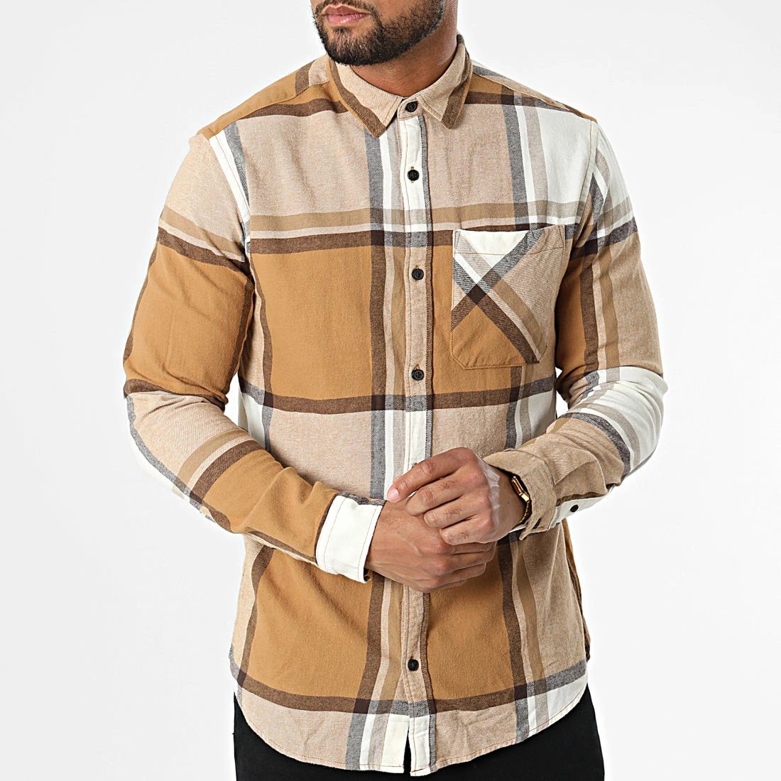 • Chemise à manches longues tendance avec motif à carreaux brodé all over