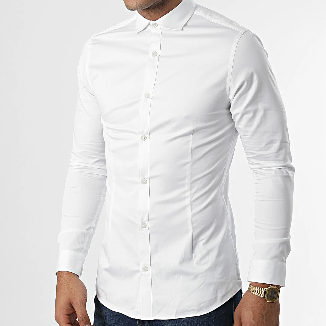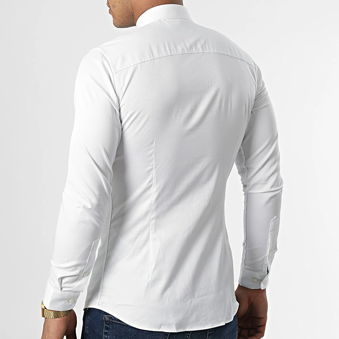 • Chemise cintrée à col classique en coton uni