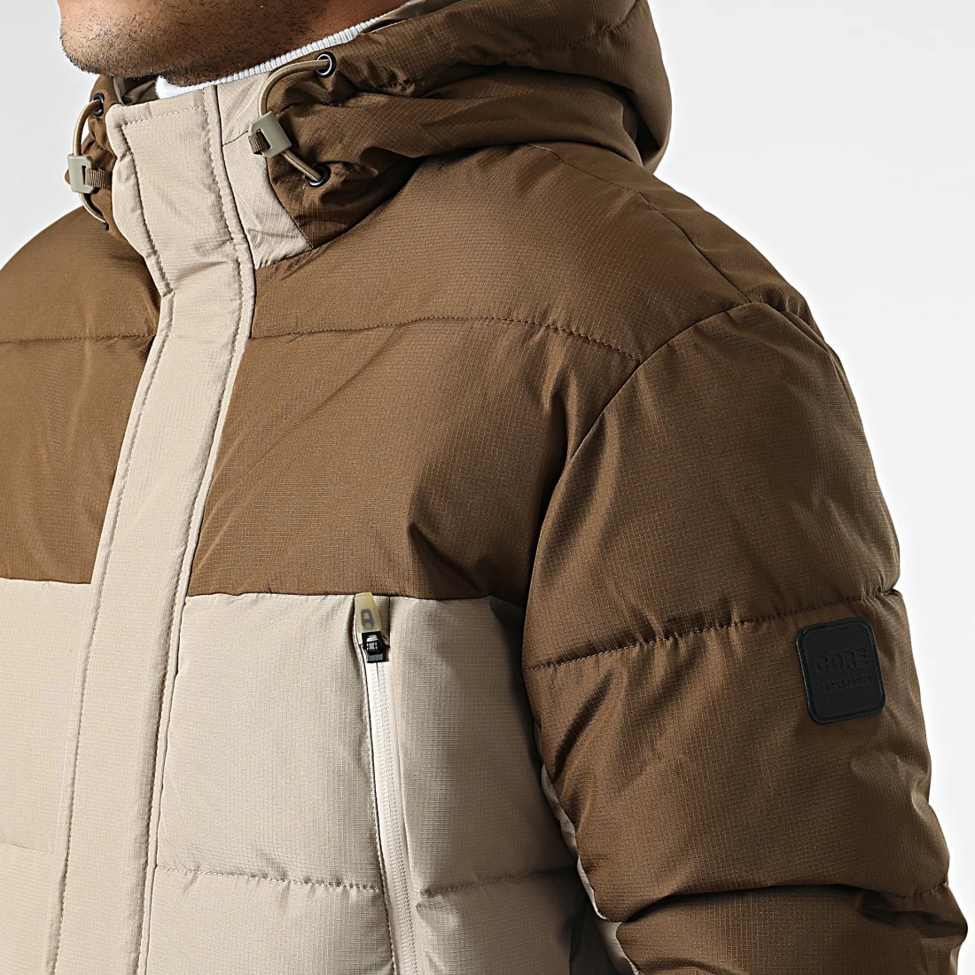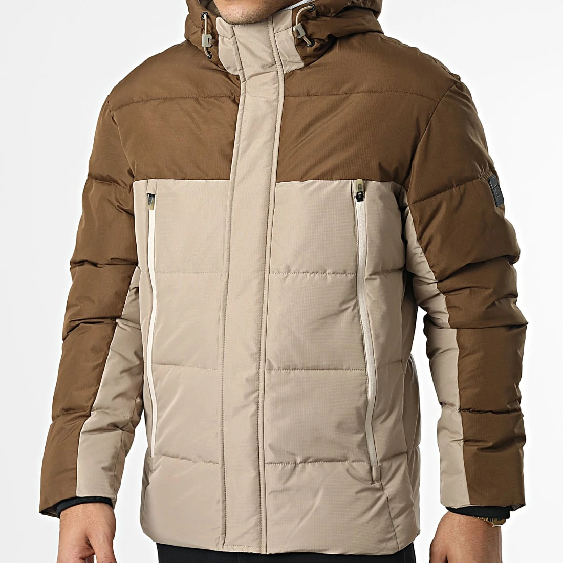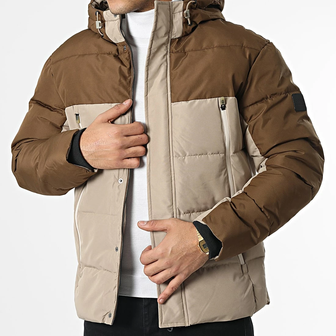 • Doudoune capuche chaude bicolore avec patch Jack And Jones brodé à l’épaule