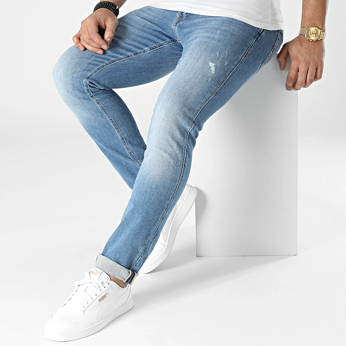 • Jean slim tendance avec finition délavée et usée