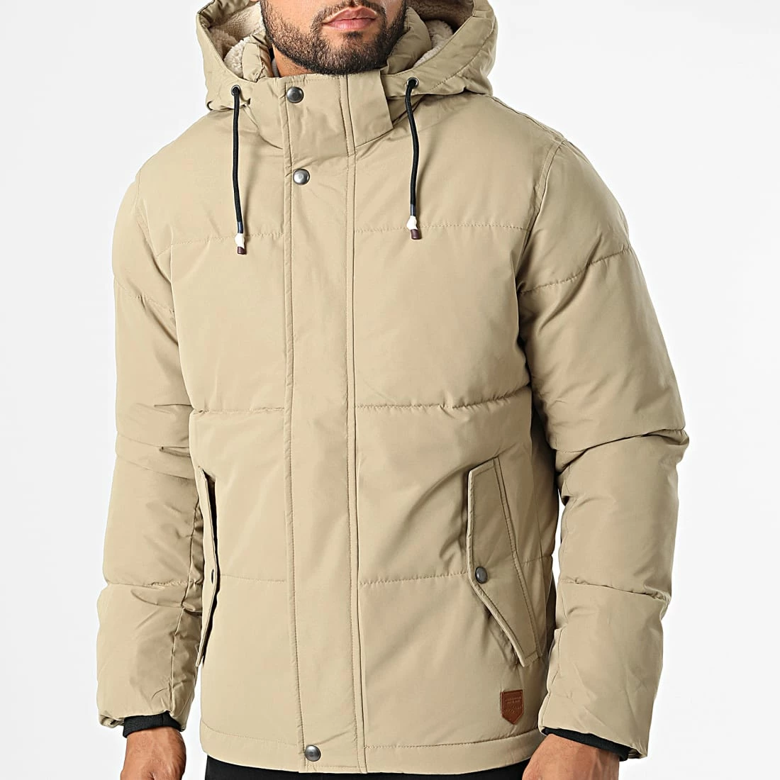 • Parka capuche tendance avec patch Jack And Jones aspect cuir brodé à la taille