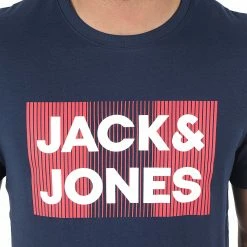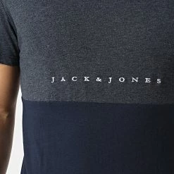 Meilleure affaire 👏 Sweat Capuche Logo Blocking Bleu Marine Gris Chiné Blanc de Jack And Jones ⭐