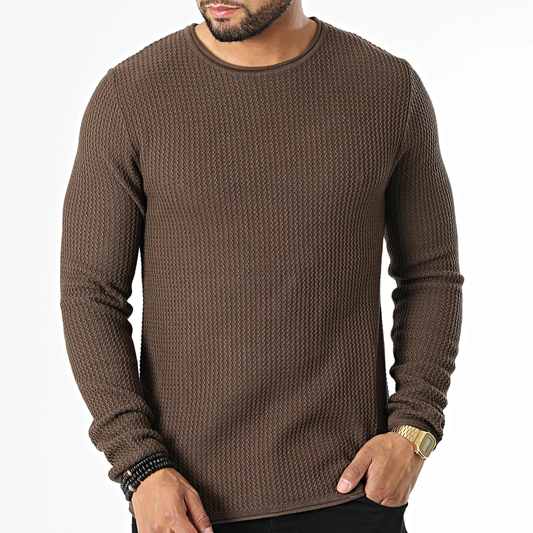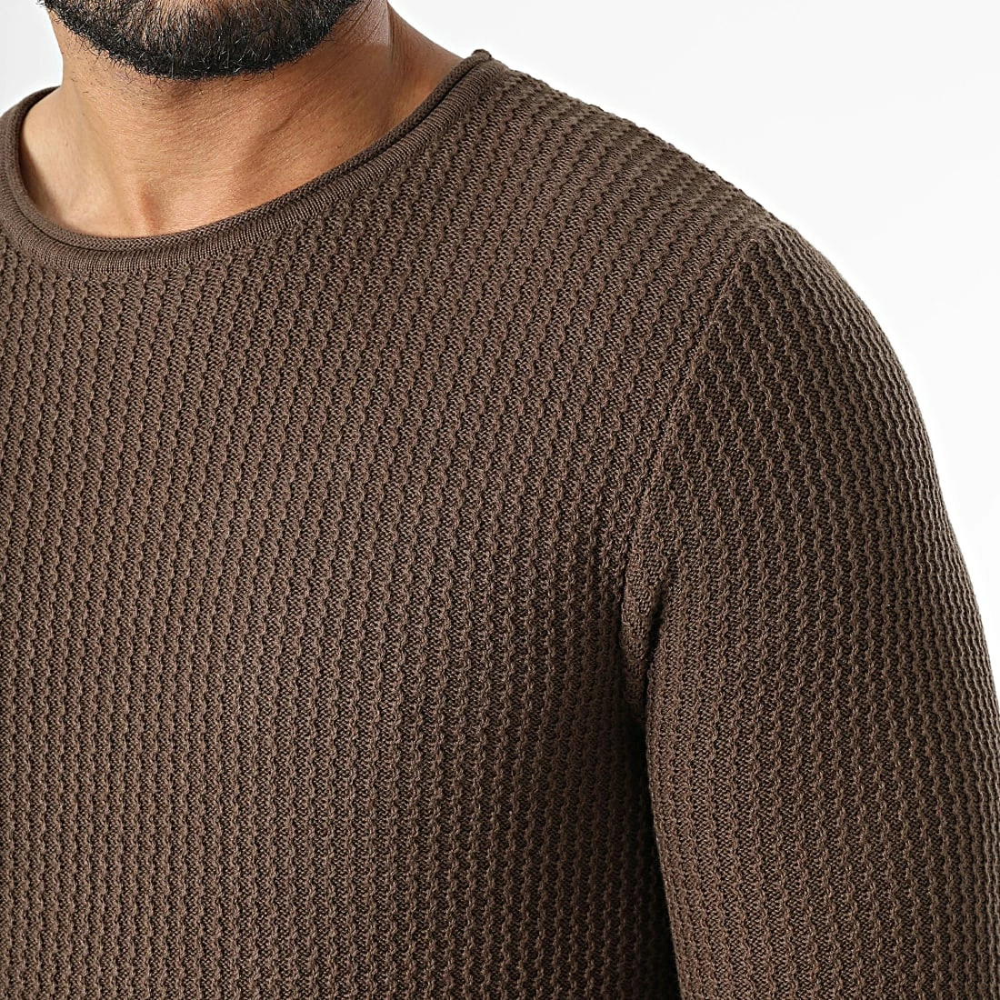 • Pull uni en maille avec extrémités à bords roulés