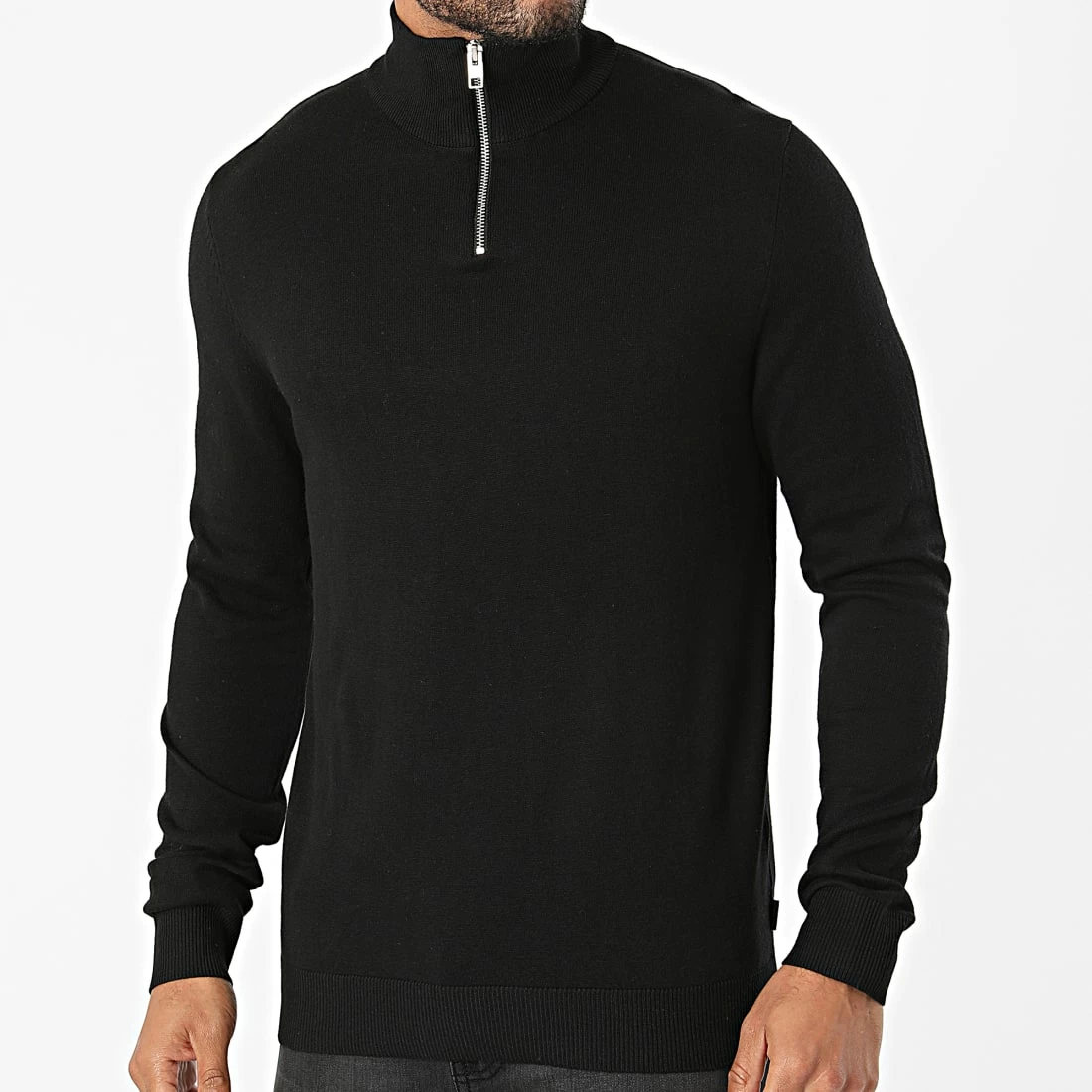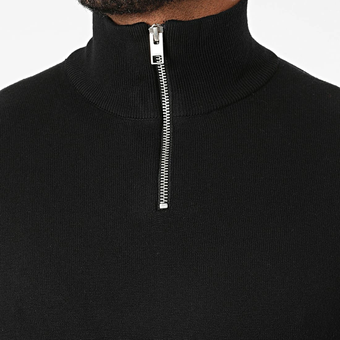 • Pull confortable et uni avec col montant zippé