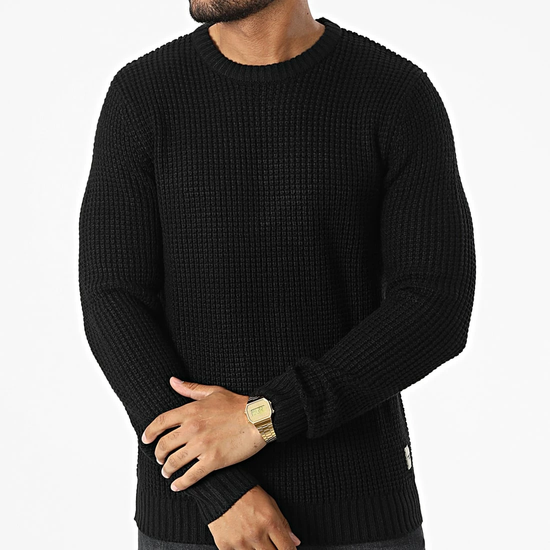 • Pull en maille uni avec patch Jack And Jones brodé à la taille