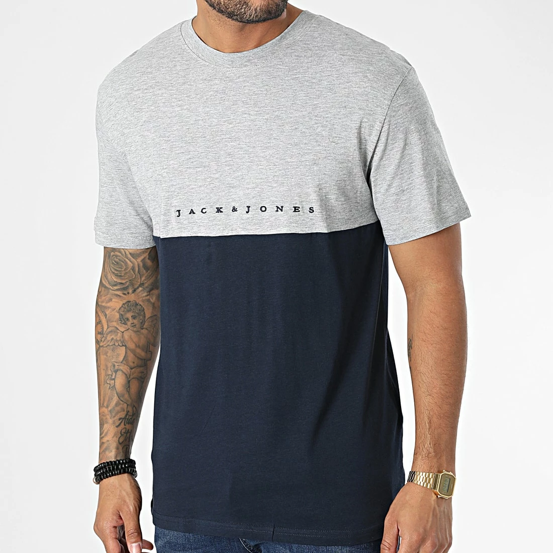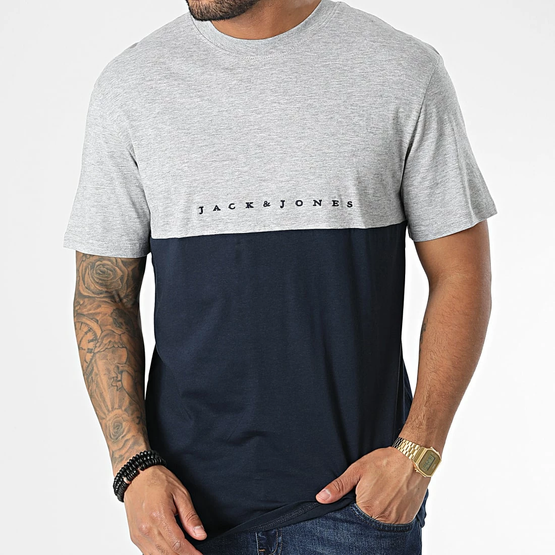 • Tee shirt bicolore tendance avec visuel Jack And Jones brodé