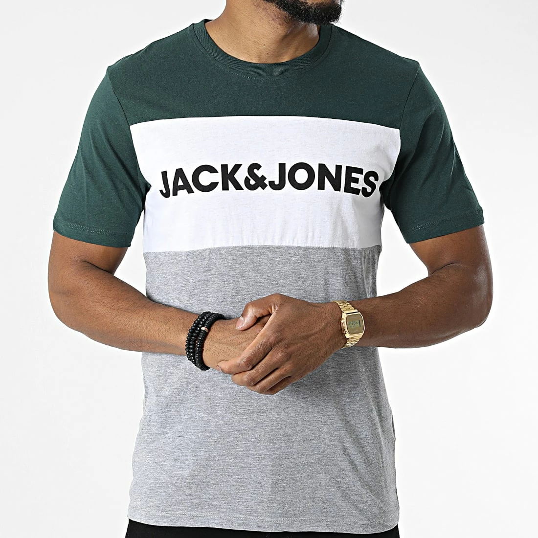 • Tee shirt tricolore en coton imprimé visuel Jack and Jones