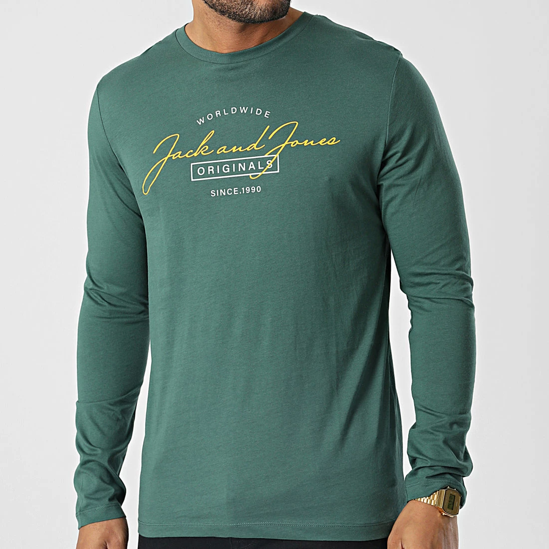 • Tee shirt manches longues en coton imprimé visuel Jack And Jones