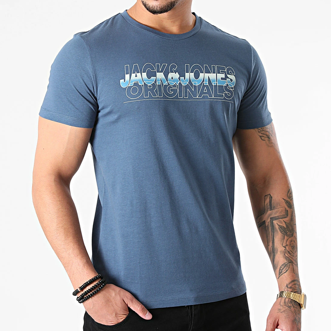 • Tee shirt en coton léger imprimé visuel Jack & Jones à l’avant