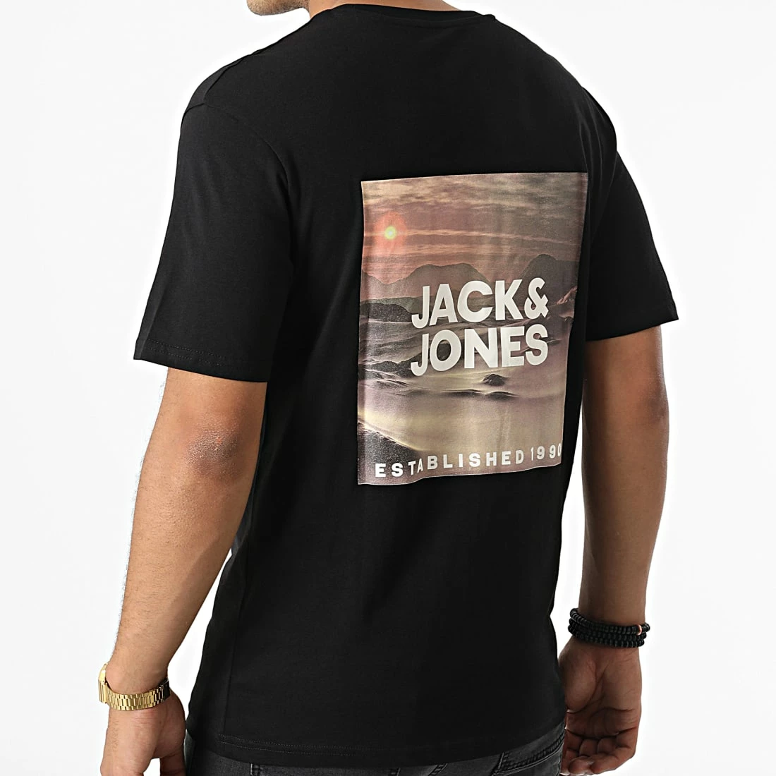 • Tee shirt en coton imprimé visuel Jack And Jones à l’avant et au dos