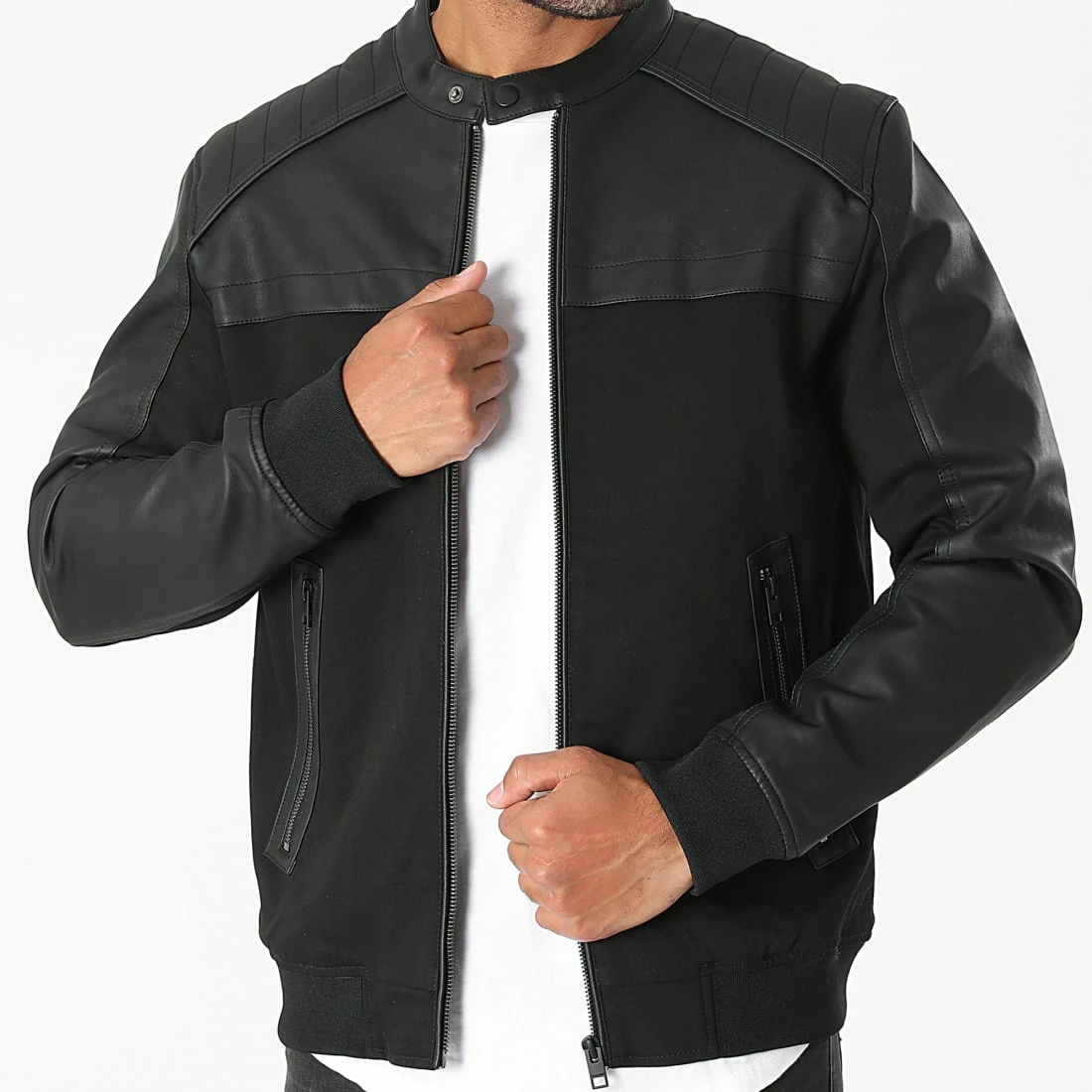 • Veste zippée style biker bi-matière